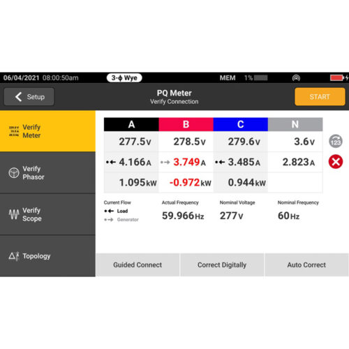 De functie 'PQ-meter' toont actuele gegevens onmiddellijk op het scherm als u op locatie bent, zodat u tijdens het storingzoeken snel potentiële problemen kunt opsporen. De gedetailleerde functie 'PQ loggen en analyseren' elimineert de complexiteit van de analyse van de netvoedingskwaliteit door u te begeleiden bij het installatieproces, zodat u altijd de juiste gegevens vastlegt. Koppel deze meetmodi aan een unieke automatische meetaansluiting en u kunt erop vertrouwen dat u zich nooit meer zorgen hoeft te maken over een tweede meting, zelfs als u niet zeker weet waar u op moet letten toen u begon.